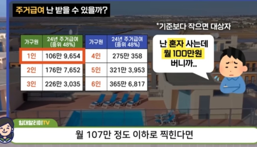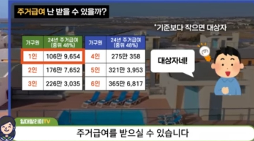152만원이 소득이 넘지 않으면 주거 급여 신청이 가능하다.