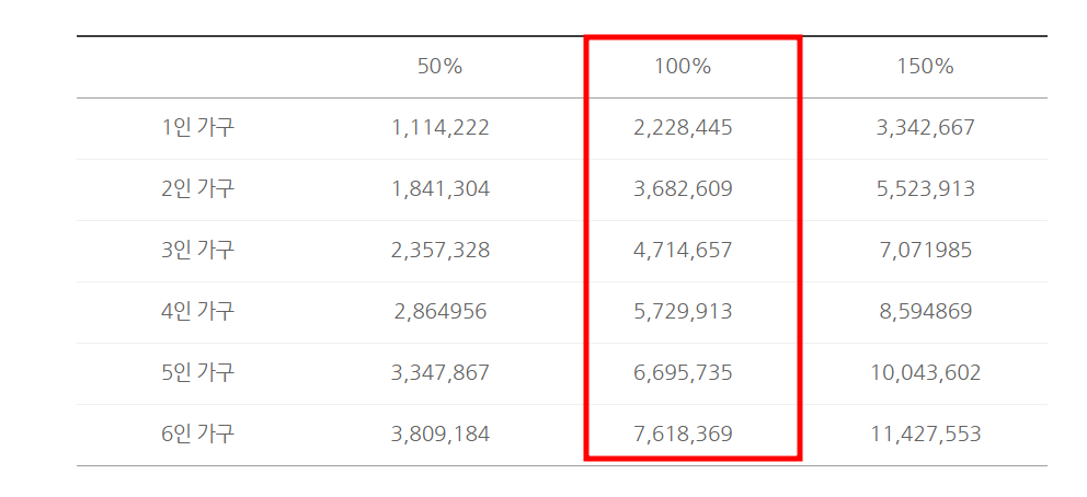 중위소득 100% 기준은 매년 변경되며, 2024년 기준 4인 가구의 경우 약 572만 9913원이 중위소득 100%입니다.